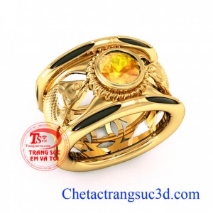 Kiểu chế tác: Nhẫn nam lông đôi voi vàng 18k thiết kế 3D hình cá Chép may mắn