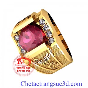 Bán chiếc Nhẫn nam phượng hoàng ruby đỏ thiết kế 3D nhẫn nam vàng 18k 75%Au,chim phượng hoàng sắc nét kết đá chuẩn,bảo hành 1 năm,đặt nhẫn nam phượng hoàng theo mệnh
