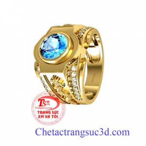 Chiếc nhẫn nam topaz,nhẫn vàng đá topaz,nhẫn nam mệnh thủy,nhẫn mệnh mộc,thiết kế nhẫn nam 3d