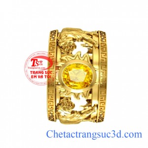 Kiểu chế tác: Nhẫn nam tuổi hổ vàng 18k gắn đá sapphire vàng thiên nhiên đẹp, có giấy kiểm định đá quý