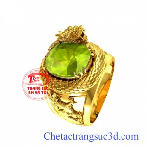 Nhẫn nam peridot, Nhẫn rồng vàng peridot, Nhẫn nam đá quý,thiết kế nhẫn nam 3d, nhẫn nam đẹp